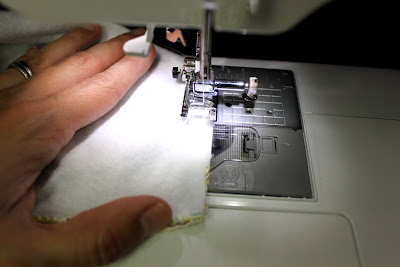 Ok, next put your tablecloth on your table all centered and such and pull the corners out into a triangle, like the picture above. Then, just cut the triangles off with a pair of scissors leaving yourself a little wiggle room to sew a seam. You will be left with 4 squares of vinyl tablecloth scraps at the end of this...save them for another fun project!