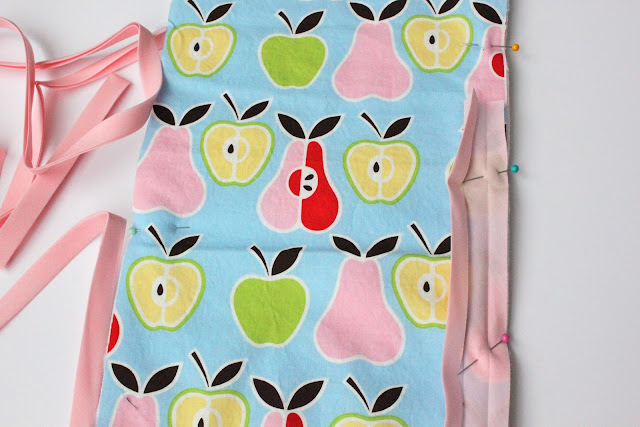 At the other end of your bias tape go ahead and cut about 5-6 inches off. Go ahead, you should have some left to use if you are following these dimensions!